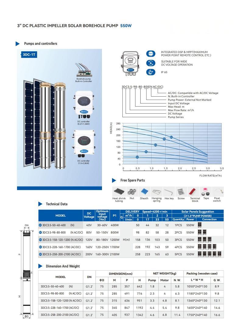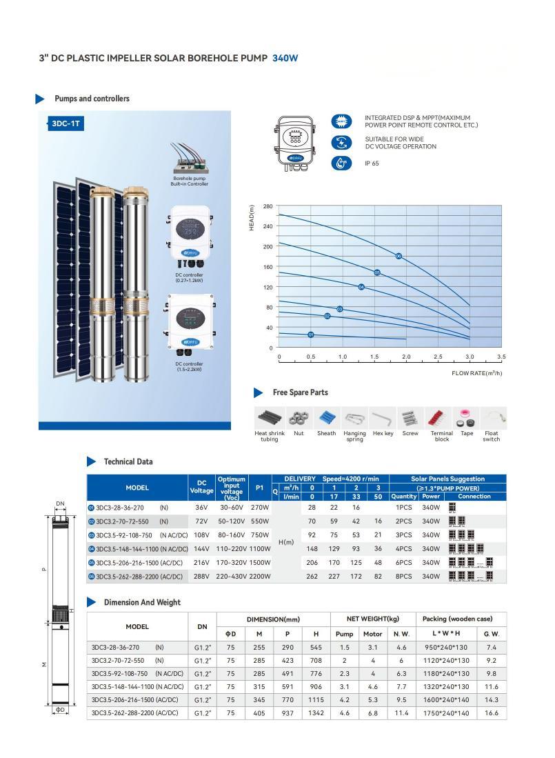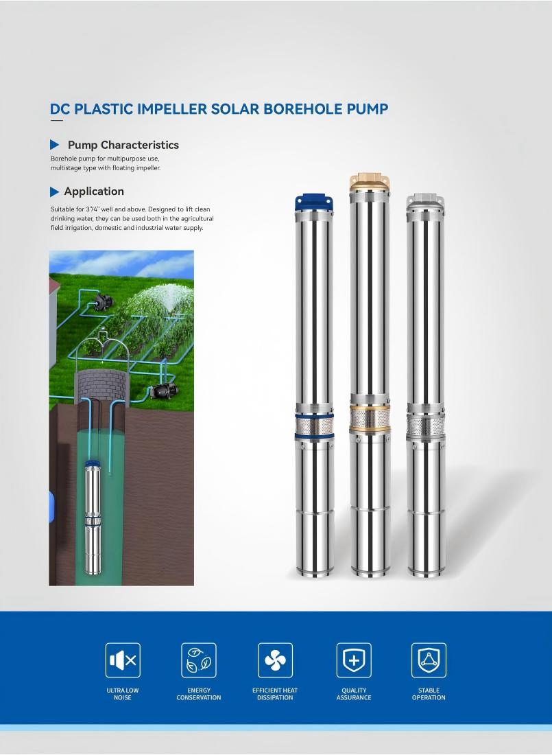 Cocok untuk sumur 3/4" ke atas. Dirancang untuk mengangkat air minum bersih; dapat digunakan untuk irigasi lahan pertanian, penyediaan air domestik, dan industri.