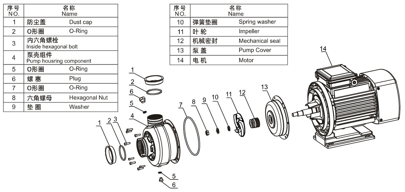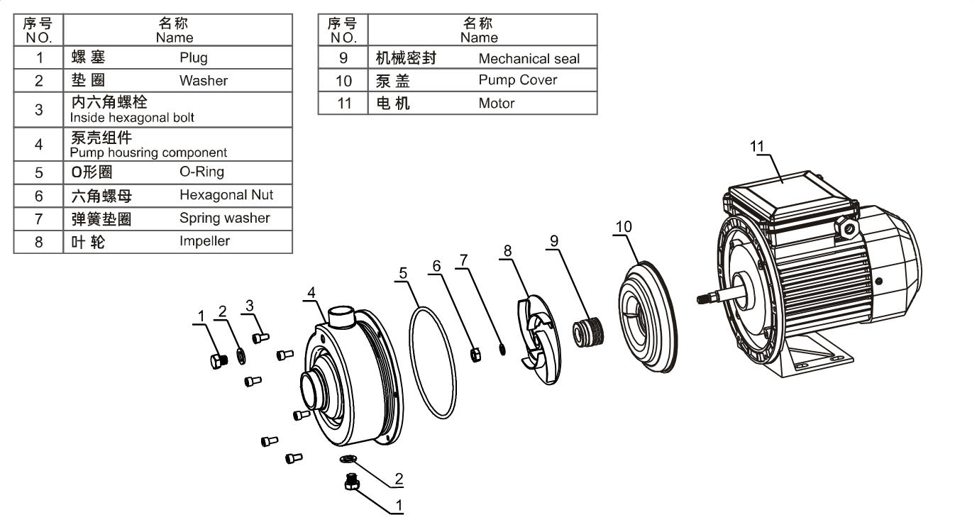 Impeller Terbuka: Memiliki kemampuan aliran yang kuat, mampu melewati padatan lunak hingga diameter 8 mm.