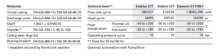 Etanorm SYT Etaline SYT Etabloc SYT Etanorm RSY