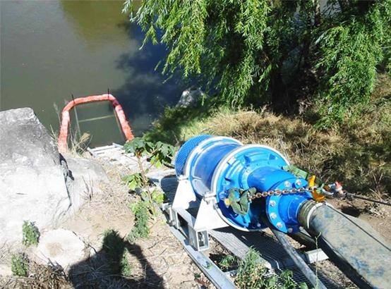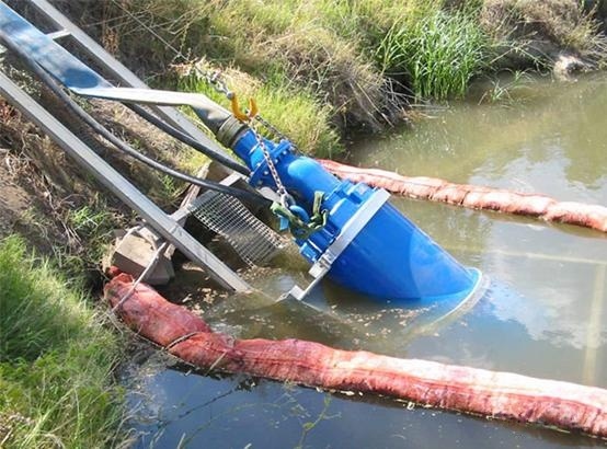 Untuk menahan tekanan tinggi, saluran pompa utama dipasang di outlet pompa dan pompa ditempatkan dalam hopper di tepi sungai untuk memisahkan benda padat seperti daun saat memompa air.