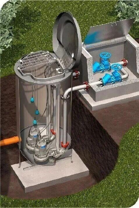 Gambar 12: Contoh stasiun pemompaan sumur basah yang dilengkapi dengan dua pompa pembuangan limbah kecil